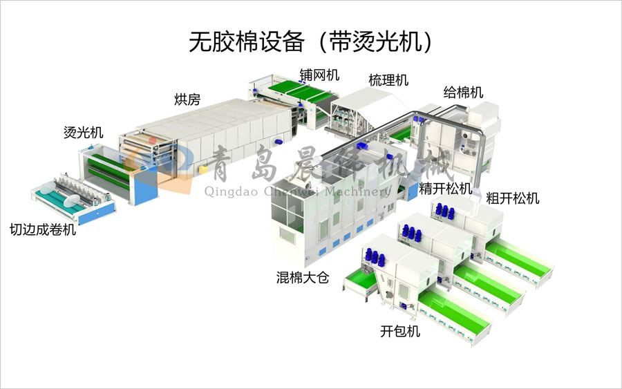 無膠棉生產線生產的無膠棉手感柔順、回彈好、透氣性強、耐水洗,主要適用與防寒服裝、睡袋、床上用品沙發(fā)、空氣過濾等。