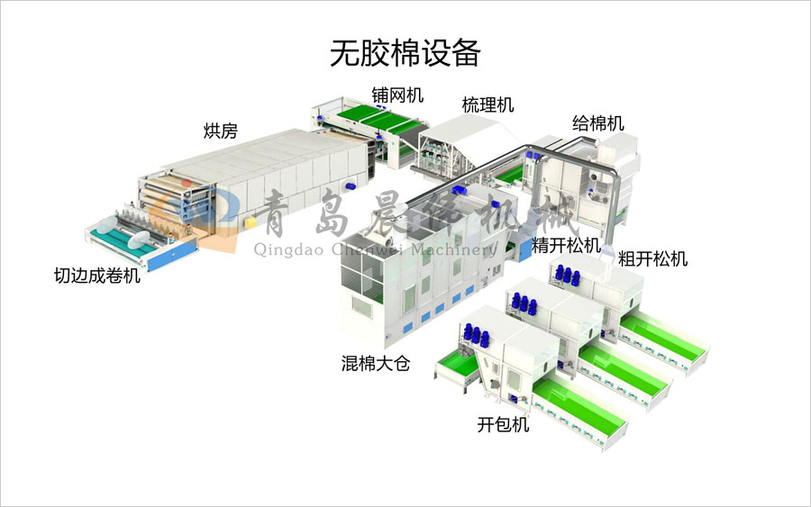 開包機-開松機-振動給棉機-梳理機-鋪網機-烘房-切邊成卷機