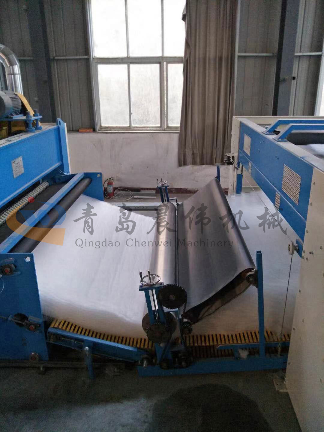 5. CWPW-鋪網(wǎng)機:用于將梳理纖網(wǎng)通過移動小車交叉折疊為所需幅寬和定量的多層纖網(wǎng),以供后道工序使用。鋪網(wǎng)輥采用特殊結(jié)構(gòu),加裝壓網(wǎng)輥和導(dǎo)流板,不飄網(wǎng)不起皺,五只大功率電機精確控制各部件的運動,電動輸出簾高度調(diào)節(jié)裝置