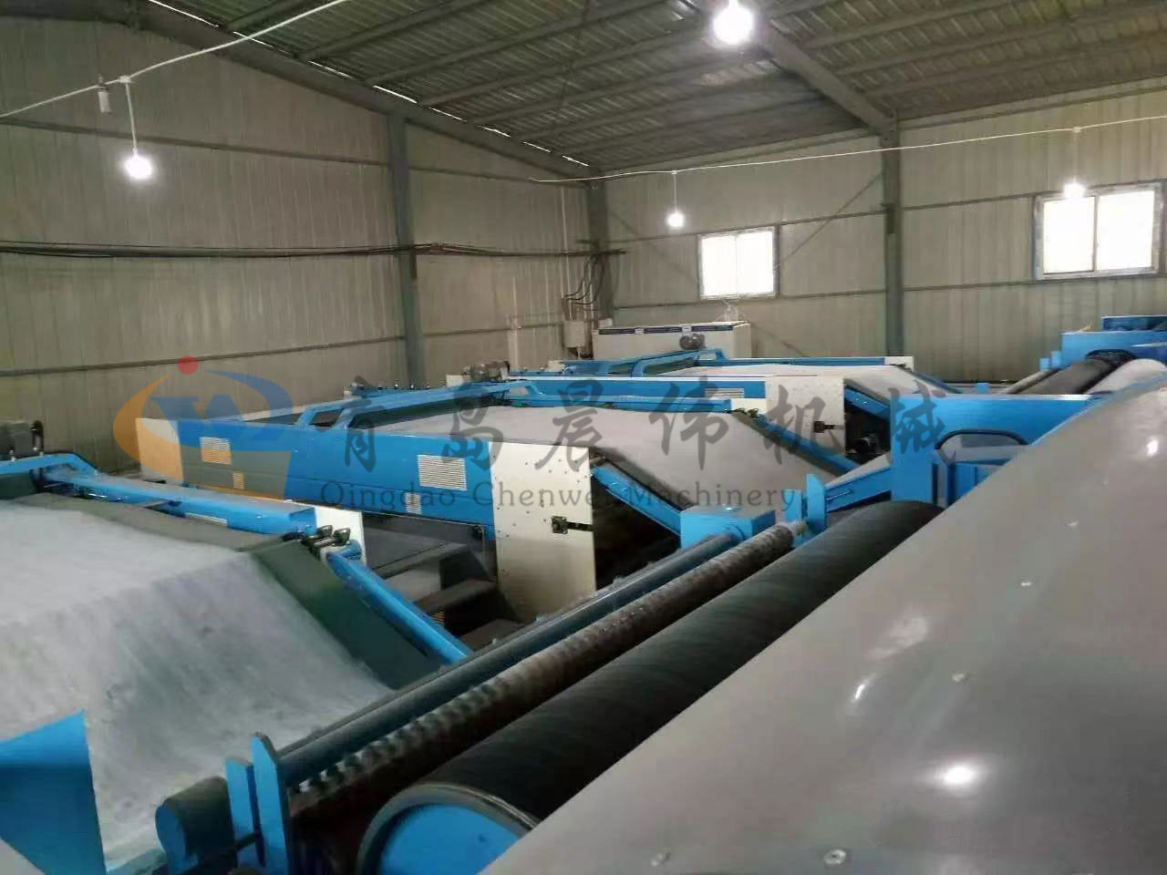 該生產(chǎn)線用于生產(chǎn)高檔家用紡織材料仿絲棉, 仿絲棉廣泛應(yīng)用于服裝、床上用品、家具等。根據(jù)客戶要求可分四機(jī)頭、六機(jī)頭、七機(jī)頭等。機(jī)頭越多,產(chǎn)量越高。