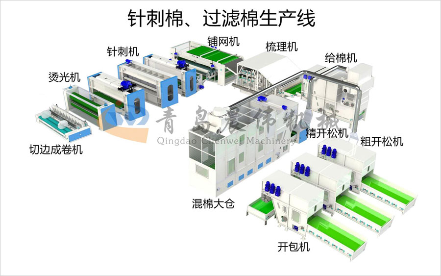 開包機-開松機-振動給棉機-梳理機-鋪網(wǎng)機-針刺機-切邊成卷機